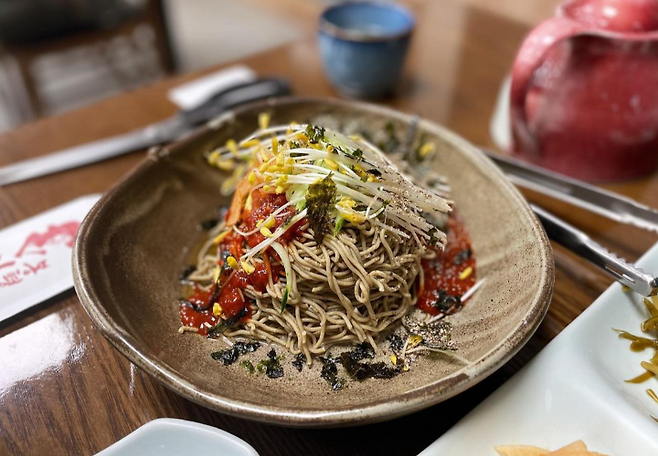 이대팔 100% 메밀 '미가연' 12,000원 메밀싹 육회 25,000원