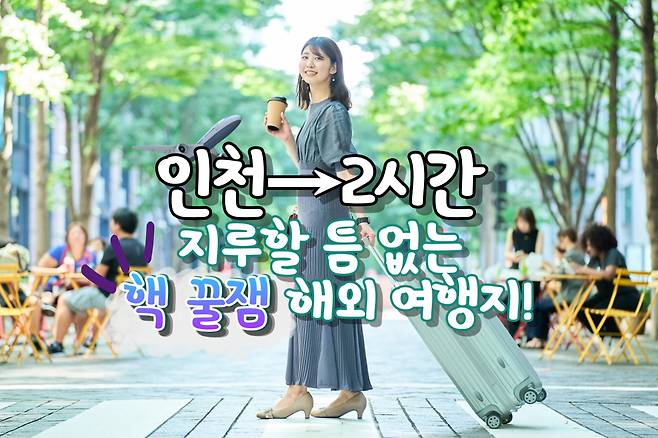 해외여행, 멀리 가야 한다는 부담 때문에 망설였던 적이 있다면 주목! 사실 인천공항에서 비행기로 단 2시간이면 도착하는 해외 여행지가 꽤 많은데요. 비행 시간만 보면 제주도에 가는 것과 비슷할 정도죠.