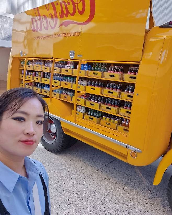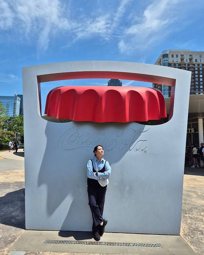 그녀가 배경으로 삼은 노란색 클래식 코카콜라 트럭 역시 시선을 사로잡는다. 과거 병음료를 나르던 복고풍 디자인과 진열된 다양한 음료들이 이국적인 무드를 배가시킨다. ‘스프라이트’, ‘코카콜라’ 등 다양한 음료를 앞에 두고 미소 지은 그녀의 표정은 이번 방문이 단순한 여행이 아닌, 일상에서 벗어나 새로운 영감을 얻기 위한 여정임을 암시한다.