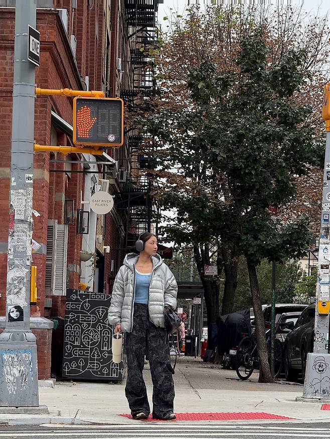 커다란 헤드셋을 목에 걸치고 옆에 무심하게 놓인 텀블러까지 더해지니, 마치 뉴욕 현지에서 갓생을 사는 힙스터 같은 에너지가 그대로 전해져요.