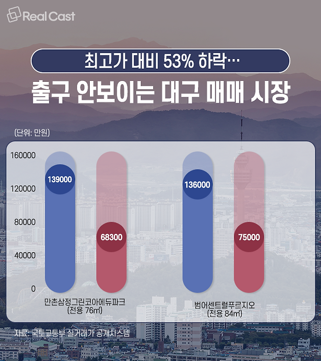 최고가 대비 53% 하락… 진짜 반토막 난 대구 아파트