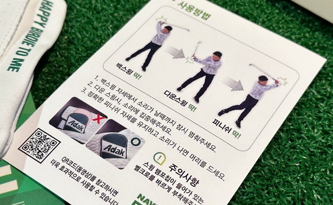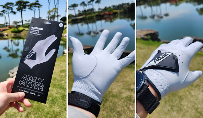 회사에 의하면, 이 같은 연습을 반복함으로써 내 몸에 템포가 체화되고, 더 이상 코치나 영상 없이도 스윙의 리듬을 교정할 수 있게 된다고 하네요. 연습용 실리콘 처리된 장갑과 고급 양피 정갑으로 두 모델이 있습니다. 템포칩의 소리가 스윙 중 잘 들릴까 의문이 들기도 했는데, 신기하게도 잘 들렸고 손등에서 약간 느낌이 전달되었습니다.