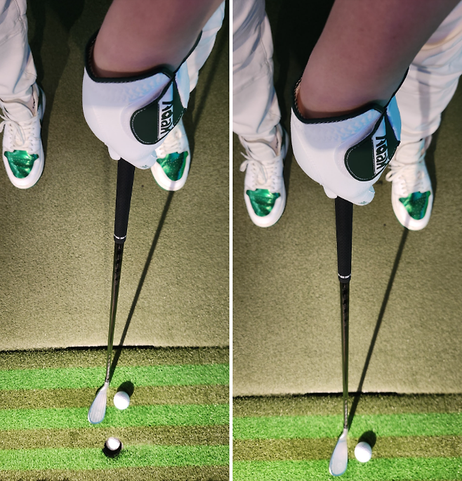 공중 부양처럼 보이는 시각 효과는 위 사진처럼 설명할 수 있지요. 공을 올려놓고 어드레스 시 내려다보면, 티 아래가 공으로 가려져 보입니다. 저만의 생각이지만, 티 아랫부분이 '없어서' 클럽페이스와 임팩트 시 저항이 조금이나마 줄여질지 않을까 생각합니다 ㅎ