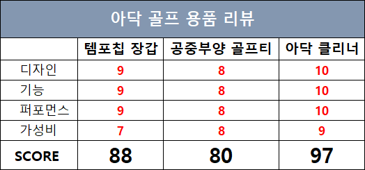 위 3가지 아닥 제품들은 기능도 좋고 아이디어도 신선해서 누구나 써보고 싶어질 만큼 만족도가 높습니다. 세심한 아이디어로 만든 장갑은 실력 향상을, 골프티와 클럽 클리너는 골프 자체를 더 즐겁게 만들어줍니다. 골프장이나 연습장에서 주목받는 똑똑한 장비를 찾고 있다면, ADAK 골프 제품을 꼭 한 번 써보시길 권합니다.