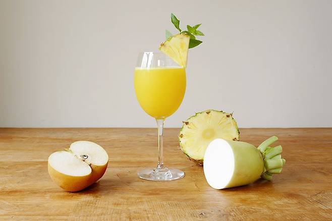 오이의 시원함과 파인애플의 상큼함이 만나면 부기 제거와 디톡스 효과가 있는 주스가 완성돼요.