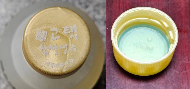 뚜껑은 탄산 배출을 위해 부직포를 적용하지 않고 완전 밀폐되는 재질로 되어 있습니다. 발효가 잘 끝나 병입된 후 탄산이 많이 생성되지 않는 상태로 보입니다.