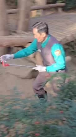 한 팬이 포착한 사진 속에는 송바오와 후이의 천진난만한 술래잡기 한 판이 담겨있었습니다.