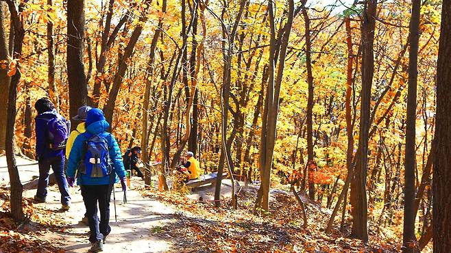 🏰 북한산성 탐방로: 경사가 완만하고 역사 유적과 자연을 동시에 감상할 수 있는 가족형 산책 코스. 천천히 단풍을 감상하며 걷기 좋다.