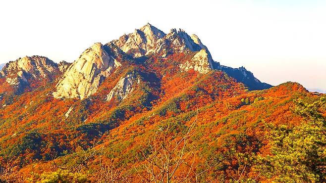 햇빛에 반사된 단풍잎은 수묵화 위에 채색을 더한 듯 환상적인 풍경을 자아내며, 가을 산행의 백미를 선사한다.