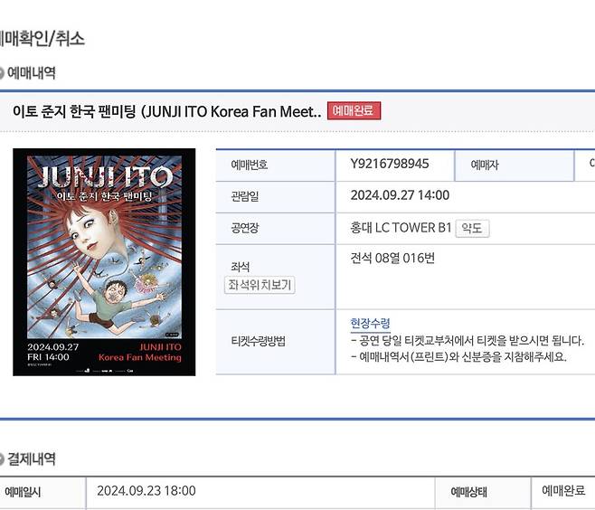 16초만에 매진이 되었다고하는데 진짜 운이 좋았던 것 같습니다!!