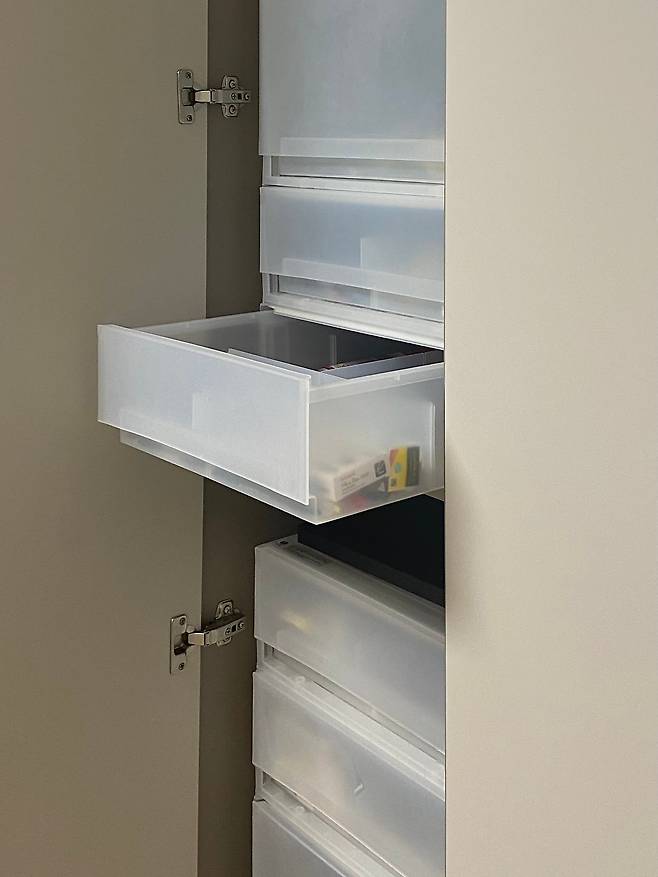 또 자질구레한 물건이 바깥에 나와있는 걸 선호하지 않아서, 최대한 수납공간에 넣어두었어요.