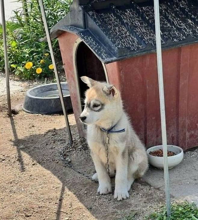 댕댕이 눈 주위가 검은색 띄를 하고 있는게 아니겠어요 ㅎㅎ