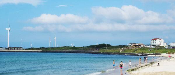 비교적 고요한 해수욕장이지만 투명한 물색이 아름다운 월정리해수욕장. 해변가를 따라 알록달록한 포토존도 다수 설치되어 있어 가족들과의 추억을 사진으로 남기기에도 좋습니다. 월정리 해수욕장에서 성산일출봉 또는 표선해수욕장 방면으로 해안도로를 지나면 풍력발전기와 함께 이국적인 제주도의 풍경을 감상하며 가벼운 드라이브를 즐기기에도 좋습니다.