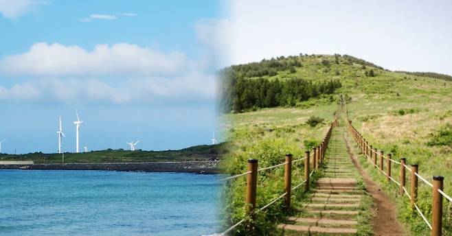 오래 걷는 것을 힘들어하는 부모님과 함께하는 제주도 여행이어도 걱정이 없습니다. 정상까지 오르지 않아도, 입구 인근 길게 뻗은 계단 앞에서 싱그러움 가득한 풍경을 감상할 수 있기 때문이죠. 관광객이 많지 않다면 이 계단에 잠시 앉아 불어오는 바람에 잔디들이 춤을 추는 소리를 감상하기에도 좋습니다.