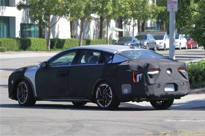측면 디자인은 스포티함을 극대화한 패스트백 루프라인이 압권입니다. 후면으로 완만하게 올라가는 라인은 마치 물고기 모양과 같은 유려한 형상을 나타내며, 특히 뒷문 손잡이를 C-필러에 인접한 도어 프레임까지 밀어 넣어 쿠페 느낌을 한층 더 강조했습니다. 이러한 디테일은 K4 풀체인지가 단순한 세단을 넘어 스타일리시한 스포츠 세단을 지향하고 있음을 명확히 보여줍니다. 프론트 휀더와 후면부로 이어지는 리어 휀더는 모두 ‘Y’자 형태의 라인을 통해 더욱 입체적인 이미지를 완성해 시각적인 볼륨감을 극대화했습니다.