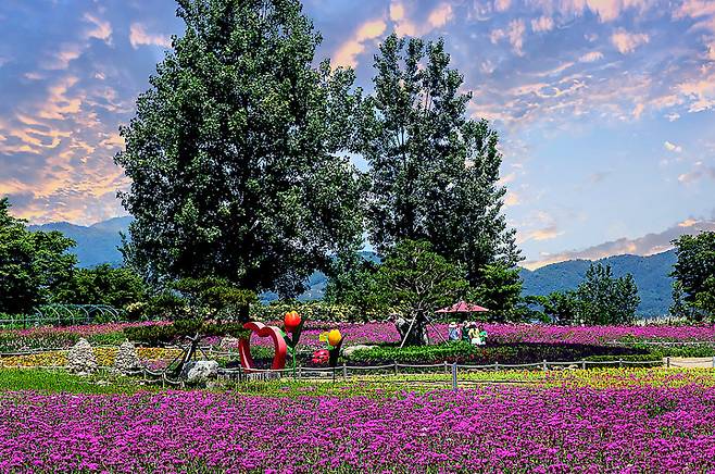 지도에서 보면 그저 평범한 시골길 사이에 있는 소공원 같지만, 직접 발을 들여놓는 순간 그 생각은 단숨에 바뀐다. 10만 송이 이상의 계절꽃이 한꺼번에 피어나는 마법 같은 풍경은 이곳이 단순한 동네 꽃밭이 아니라는 걸 증명한다.