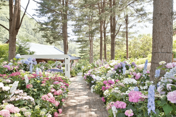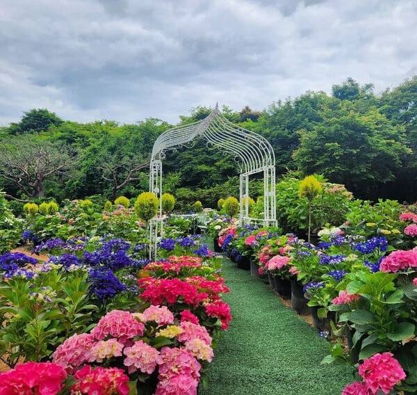 서울 근교 수국 명소로 추천하는 가평 아침고요수목원에서는 6월 수국 전시가 진행됩니다. 2024 수국전시회는 6월 15일부터 7월 14일까지로 예정되어 있는데요. 수국이 가장 아름답게 만발한 곳은 출구 쪽의 굿모닝 커피 카페 부근입니다.