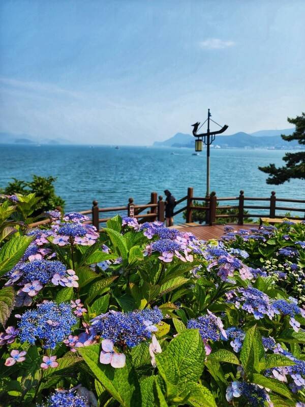 바다 앞 벤치를 비롯해 이순신공원 곳곳에 수국이 탐스럽게 핀 모습을 감상하며 잠시의 여유를 즐겨보세요!