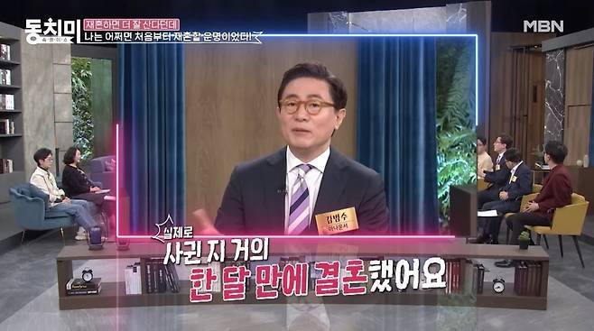 MBN '속풀이쇼 동치미'에는 11살 연하의 아내와 재혼한 김범수가 출연해 '재혼하면 더 잘 산다던데'라는 주제로 이야기를 나눴다.