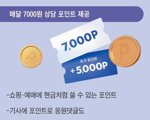 멤버십 회원에게는 매월 현금처럼 쓸 수 있는 포인트 7000원 상당을 제공합니다. 조선멤버십 포인트는 회원이 멤버십 서비스 이용 시 1포인트를 1원처럼 사용할 수 있는 신개념 마일리지입니다. 연내 가입하면 매달 5000포인트를 추가 증정하는 이벤트도 진행하고 있습니다.