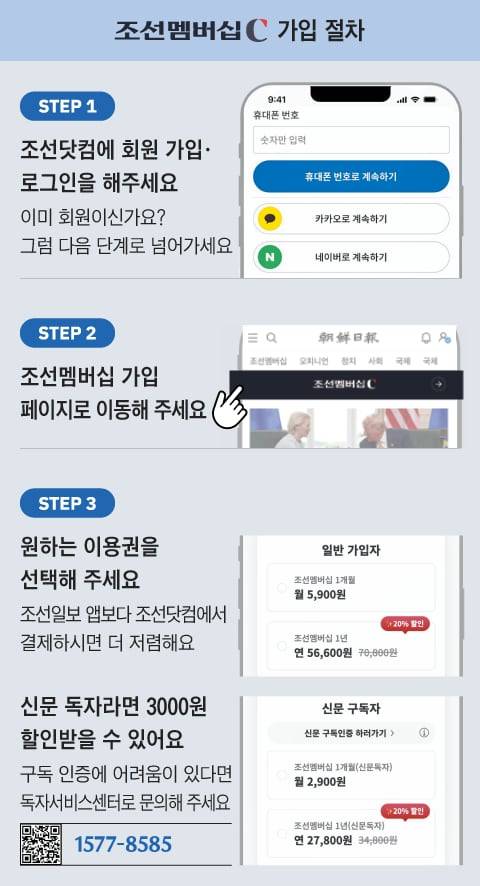 신문 구독자는 월 2900원, 조선닷컴 회원은 월 5900원에 조선멤버십 멤버가 될 수 있습니다. 연간 결제할 경우에는 20% 할인 혜택도 드립니다.