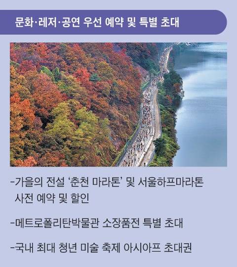 호반의 도시 춘천에서 가을 단풍의 절경을 만끽하는 ‘가을의 전설’ 춘천마라톤은 매년 예약 전쟁이 벌어집니다. 멤버십 회원은 춘천마라톤 사전 예약에 할인 혜택까지 누리실 수 있습니다. 서울하프마라톤도 같은 혜택을 제공합니다.