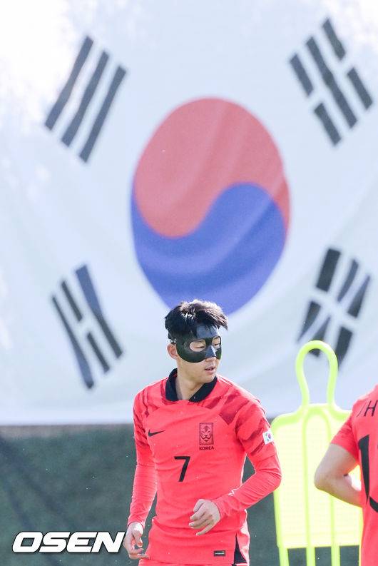 손흥민이 마스크를 착용한 채 훈련을 하고 있다. 2022.11.16 / soul1014@osen.co.kr