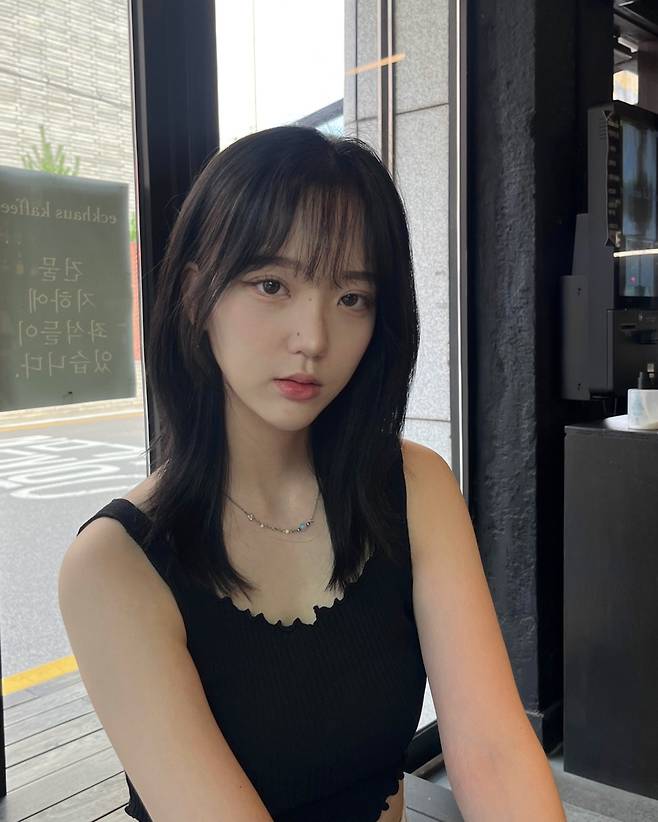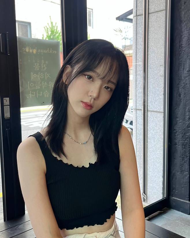 자칫 밋밋할 수 있는 블랙 크롭 나시를 입체감 있는 디자인으로 완성했죠.