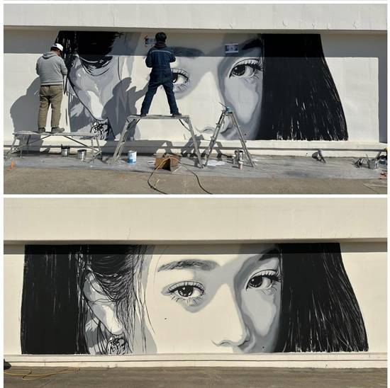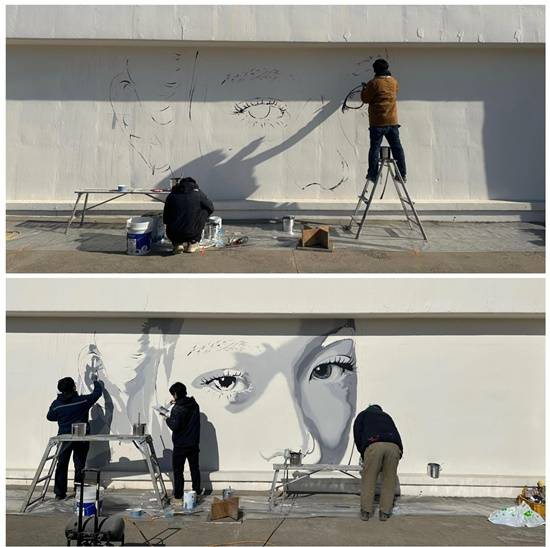 실제 아무 것도 없는 흰 벽에 장원영의 얼굴 스케치부터 채색까지 더해지면서 예술적인 비주얼의 '장원영 벽화'가 탄생했다.
