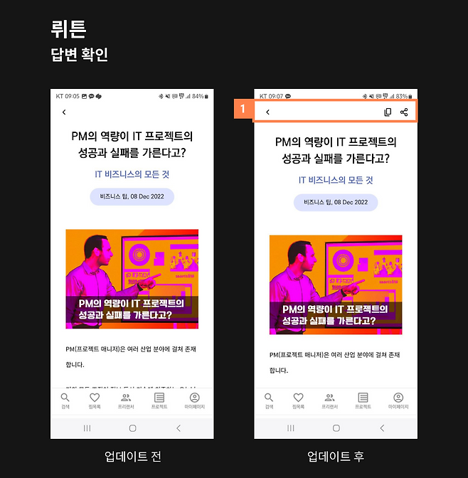 - 서비스의 업데이트 전/후와 실무자의 코멘트가 담긴 '업데이트 소식'