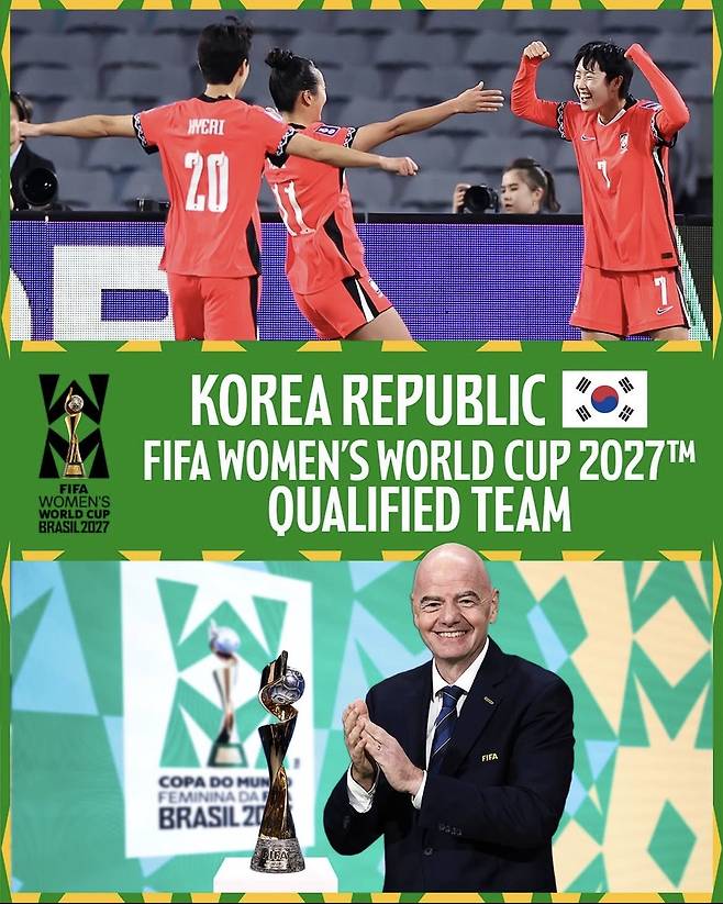 이로써 한국은 2027년 브라질에서 열리는 국제축구연맹(FIFA) 여자 월드컵 본선 진출을 확정했다.