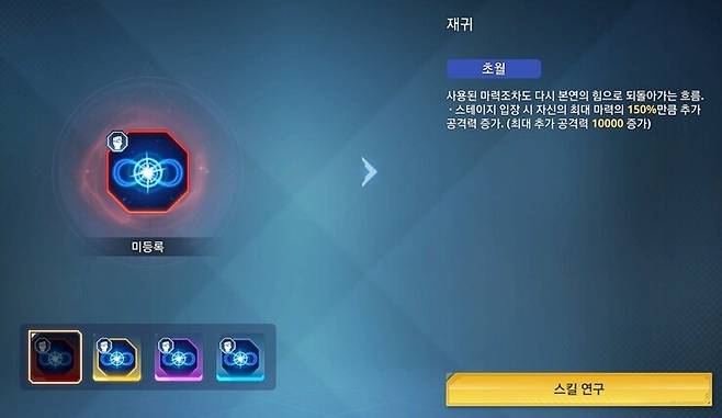 먼저 증강 축복의 돌에는 전력 개방과 재귀, 최후의 선고가 새로 들어왔다. 전력 개방은 초월 기준 체력이 100%일 때 공격력이 30% 증가하는 효과다. 체력이 조금이라도 소진되면 버프가 꺼지기 때문에 보호막을 필수로 사용해야 하며, 지속적인 대미지가 들어오는 스테이지에서는 쓰기 어렵다. 효과가 강력한만큼 유지가 까다로운 축돌이다.