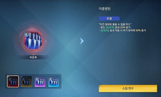 이중방탄은 받는 봏호막 효과가 25% 증가하고, 보호막이 있을 때 추가로 방어력이 50% 증가하는 효과를 제공한다. 성진우는 공격력 계수를 사용하지만 일반 헌터들에 비해서는 높은 방어력을 지니고 있고, 특히 이번 신규 광휘의 공방 어려움 난이도에서는 보스의 공격력이 매우 높아 방어력을 상승시키는 축돌 세팅이 주목받고 있으니 얻었다면 활용해보자.