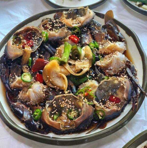 또 다른 인기 메뉴인 전복마늘조림은 가을철 입맛을 돋우는 데 안성맞춤입니다. 향긋한 마늘 향과 쫄깃한 전복의 식감이 어우러져, 가을 바다의 맛을 온전히 느낄 수 있습니다.