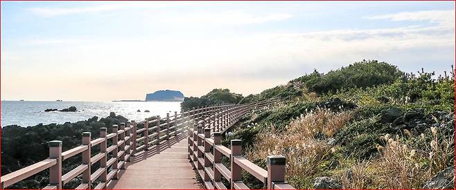 특히, 구불구불 이어지는 길을 따라 걷다 보면 우도와 성산일출봉이 번갈아 모습을 드러내며 걷는 내내 시선을 사로잡습니다.