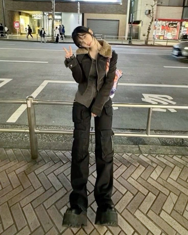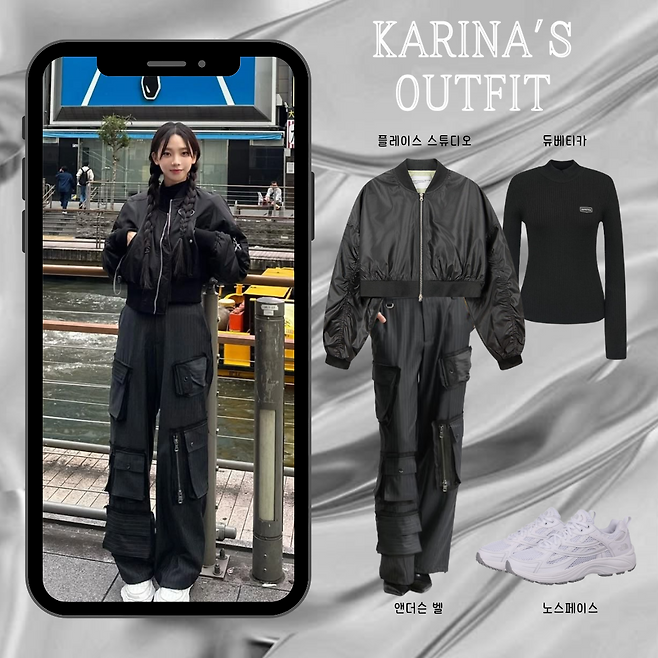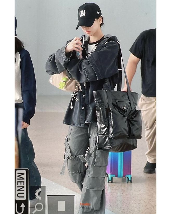 공항패션과 일상사진이에요!엠버서더 답게 프라다의 빅 백과 볼캡, 큰 남방과 장식이 달려있는 넓은 통의 진을매치해 주어 편안하면서도 어딘가 힙한 느낌을 줍니다.두번째 사진은 일본에서 촬영한 사진이라고 하는데요!y2k패션을 아주 잘 소화하는 카리나 입니다.포켓이 달린 하의와 크롭기장의 아우터와 레이어드한조금 더 긴기장의상의로 코디를 해 주었습니다.