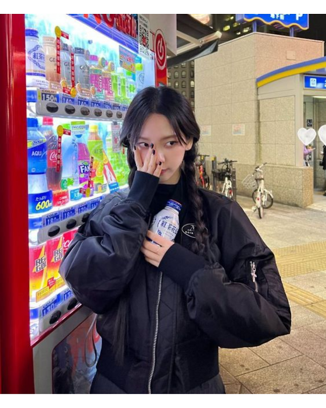 크롭기장의 상의와 펑퍼짐한 하의를주로 즐겨 입는데요, 저 항공점퍼 또한 자주 착용한 템이죠!짧은 스커트도 잘 소화하지만힙한 무드의 블랙 계열 의상을 제일 자주 착용 하는 것 같아요!
