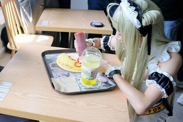 메이드 카페인 2층에서는 세 명의 메이드와 함게 다양한 이벤트를 즐길 수 있습니다. 오무라이스를 주문했을 경우 메이드들의 케찹 그림과 맛있어지는 주문을 받을 수 있으며, 일정 시간마다 메이드들의 공연도 관람할 수 있어요.
