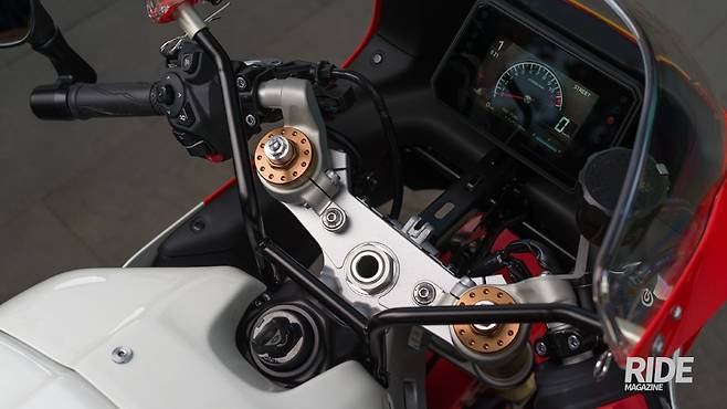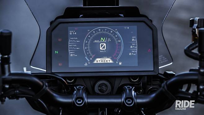 그리고 세계 최초로 레이더 시스템을 기반으로 하는 통합 브레이크 시스템도 주목할만한 부분 중 하나다. 브레이크 컨트롤(BC) 기능이 켜져 있을 때만 작동하는 이 기능은 라이더의 제동입력이 충돌을 막기에 충분하지 않다고 시스템이 판단하면 통합 브레이크 시스템이 개입해 추가적인 제동력을 발생시킨다. 즉 ACC 기능 작동 중 브레이크를 작동시켰으나 제동력이 부족할 경우 보조적으로 제동력을 추가 발생시키는 것이지, 자동차의 전방 충돌 방지(FCW)나 긴급 제동 기능처럼 입력 없이도 자체적으로 제동력을 발생시키는 것은 아니다. 그리고 코너링 중 제동이 이뤄지는 경우 타이어가 미끄러지는 것을 방지하는 코너링 브레이크 컨트롤 시스템이 탑재되어 전후방 제동력을 보조하거나 조절하고 여기에 앞뒤 서스펜션 감쇠력을 조절해 차량 안정성을 유지한다. 이러한 다양한 기능들의 작동과 설정을 위해 새로운 7인치 TFT 스크린이 계기판 자리에 장착된다. 기본 화면 구성은 3개의 테마 중 하나를 설정할 수 있으며, 어떤 것을 선택하더라도 ACC 관련 기능은 눈에 잘 띄도록 구성되어 안전한 주행을 돕는다.
