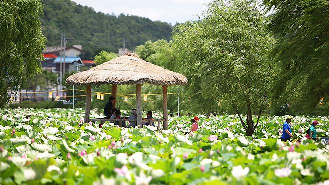 수련의 계절이 지나고 여름이 본격적으로 시작되면, 궁남지는 다시 한 번 완전히 다른 얼굴을 보여준다.