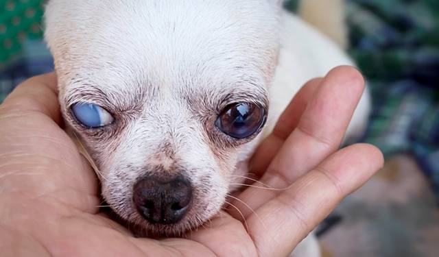 강아지의 눈이 하얗게 변하는 이유 첫 번째는 백내장이다. 강아지 백내장은 눈의 렌즈 역할을 하는 수정체에 문제가 생겨 발병하는 질환이다. 수정체가 하얗게 변하면서 시력이 점점 떨어지게 된다. 백내장은 나이와 상관없이 생길 수 있지만, 가장 주된 원인은 노화이기 때문에 노령견에게서 많이 볼 수 있다.