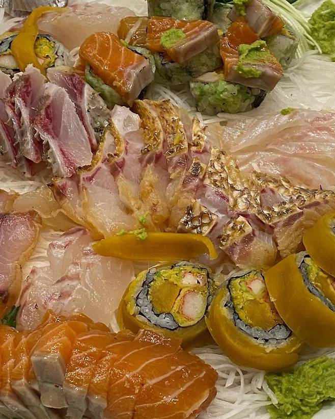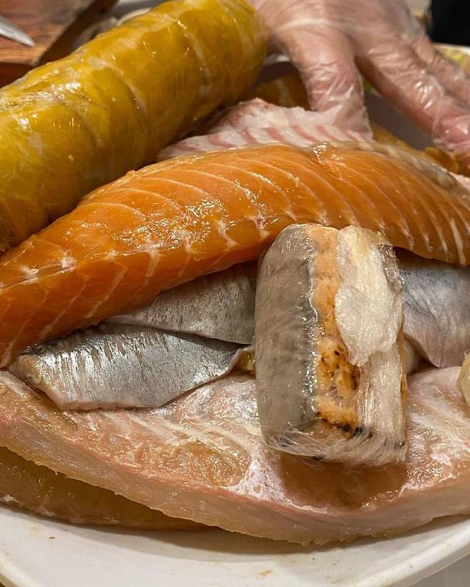 기존 하얗고 빨간 회들과는 달리, 된장 숙성 회라 노르스름한 빛깔을 자랑하는 묵호회집의 숙성 회. 큰 회를 직접 가지고 오시는 셰프님의 모습에 1차로 놀라고, 생경한 색감에 2차로 놀랄 것이다. 하지만 셰프님이 앞에서 바로바로 썰어주시는 회를 맛보게 되면 이 놀라움이 감탄의 연속으로 바뀌게 되는 건 시간문제. 큰 사이즈로 회를 숭덩숭덩 잘라주시는데, 큰 사이즈임에도 질기지 않고 입에 넣자마자 사르르 녹는 것이 또 하나의 감동 포인트다. 이곳은 회로 만든 롤과 연어 머리 튀김도 맛있는데 여기에 더해 기본안주로 나오는 시사모구이, 대구알, 구운 마늘, 은행, 호두까지 어느 하나 맛없는 메뉴가 없다. 기본안주만으로도 술 한 병은 마실 수 있다고. 가을맞이 ‘완벽한 회'와 맛있는 술을 함께하고 싶다면 고민 없이 ‘묵호회집'을 선택하길 바란다.