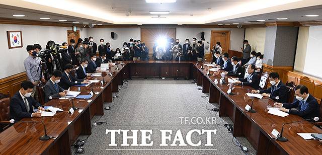 [더팩트ㅣ이동률 기자] 추경호 경제부 총리 겸 기획재정부 장관과 이창용 한국은행 총재, 김주현 금융위원장, 이복현 금융감독원장이 22일 오전 서울 중구 은행회관에서 열린 비상거시경제금융회의에 참석하고 있다.