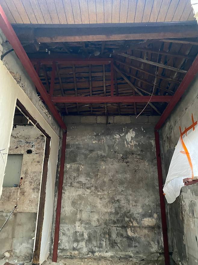엄청나게 오래된 구옥이라 '기둥 = 벽' 인데, 벽이 너무 낡아서 기둥 보강 작업부터 시작했습니다. 그래서 집 구조를 변경할 수 있었어요.