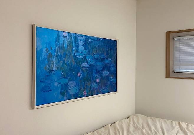반대편에는 액자형 티비인데, 직장 동료에게 추천받고 구매했는데 진짜 액자 같아서 만족하고있어요. 벽면에 시컴한 티비가 있는 것 보다 이렇게 액자형을 두니 한결 안방이 예뻐진 느낌이에요.