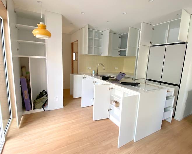 설계는 우리의 라이프 스타일에 맞춰서 어떻게 집을 구성할 것인지 이야기하고, 주방은 어떤 방향으로 할지, 기존의 가전, 가구는 어떻게 할지 논의하면서 하나 하나 만들어갔어요.