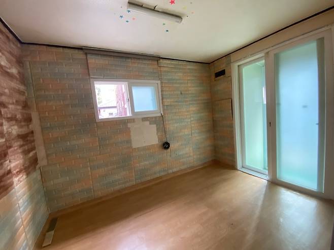 단열이 잘 안되어 있어서 스티로폼 벽지가 덕지 덕지 붙어 있었어요.