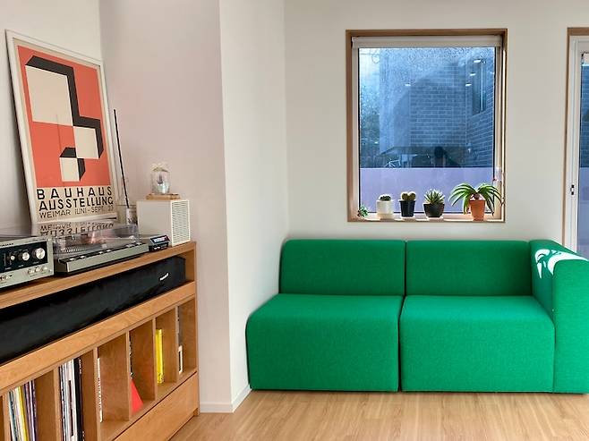 "거실에는 우리가 좋아하는 것들을 모아두고 시간을 보내고 싶어요."