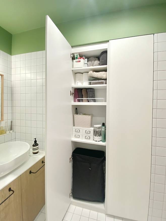 세탁바구니, 수건, 휴지 등등 욕실에서 필요한 것들이 모두 들어가 있어서 정리된 욕실을 유지할 수 있어요!