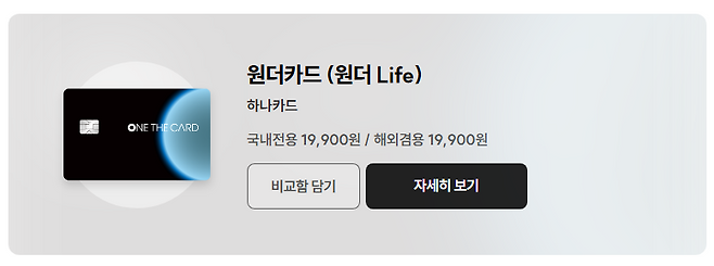 2. 하나카드 원더카드 (원더 Life) – 고정비 최대 25,000원 할인